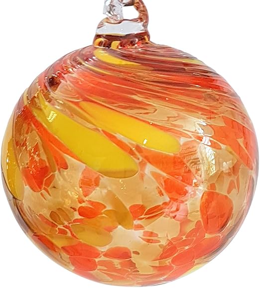 Oberstdorfer Glashutte Kugel Zum Hangen Bunte Glaskugel Gelb Orange Mundgeblasenes Kristallglas Fensterdekoration Durchmesser Ca 11 Cm Amazon De Kuche Haushalt