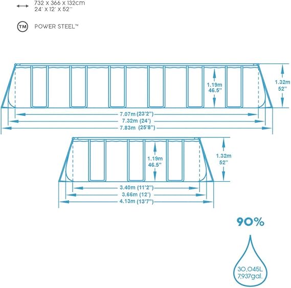 Bestway Power Steel Frame Pool 732 X 366 X 132 Cm Rechteckig Grau 30 045 Liter Ohne Pumpe Und Zubehor Ersatzteil Ersatzpool Amazon De Garten